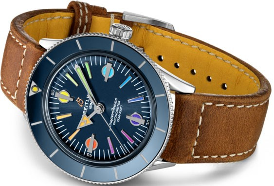 Часы Breitling Superocean Heritage 57 представлены в корпусе из нержавеющей стали и керамики размером 42 мм и водонепроницаемостью до 100 метров. Внутри корпуса установлен автоматический механизм, Калибр Breitling 10 с запасом хода 42 часа. На синем циферблате отображаются часы, минуты, секунды. Часы комплектуются кожаным ремешком с вставкой из нержавеющей стали. Серия ограничена - 1000 шт.