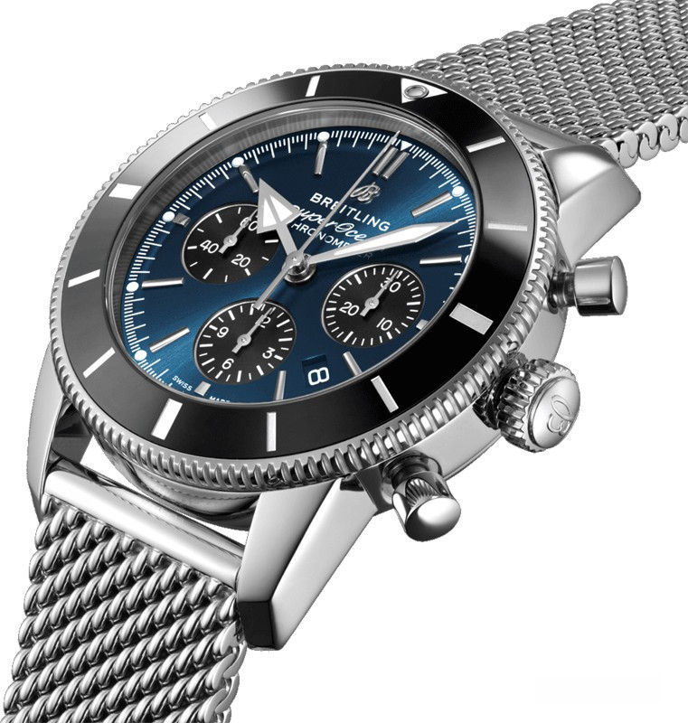 Хронограф B01 имеет целый ряд полезных функций. Его запас хода составляет 70 часов; это хронограф с вертикальной передачей и колонным колесом. Весь механизм был спроектирован так, чтобы быть легким в обслуживании. Модель комплектуется синим циферблатом с черными накопителями хронографа. Диаметр корпуса составляет 44 мм. Это отличный размер для водостойких часов с функцией хронографа, соответствующих стандарту ISO 6425.