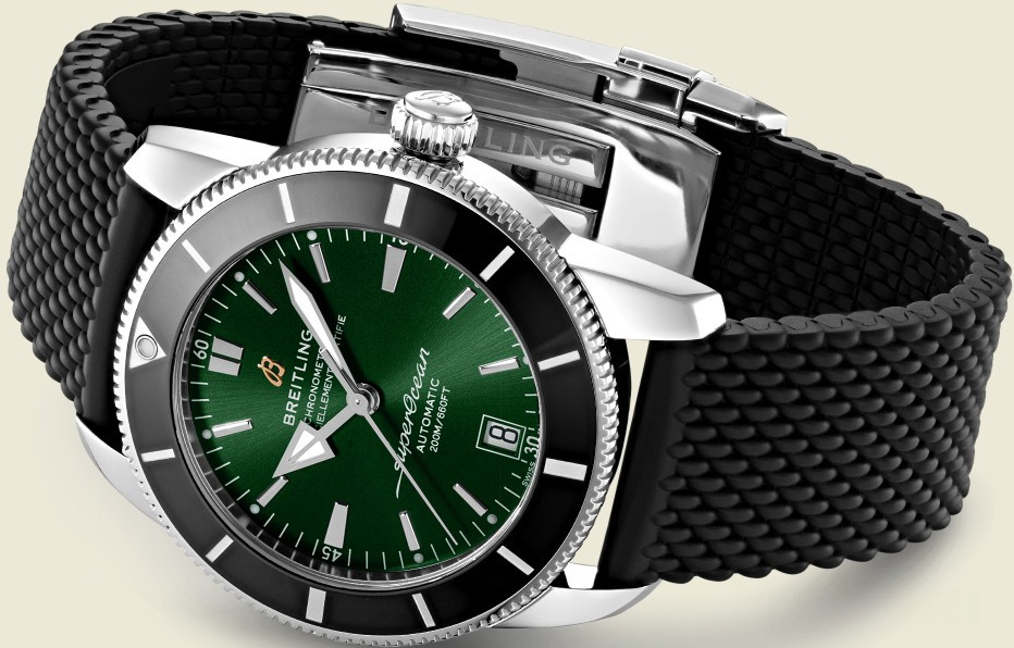 Часы представлены в корпусе размером 42 х 14.35 мм из нержавеющей стали с водонепроницаемостью до 200 метров. Внутри корпуса установлен автоматический механизм, обладающий запасом хода 70 часов. На зеленом циферблате отображаются часы, минуты, секунды, дата. Часы поставляются на каучуковом ремешке с застежкой из нержавеющей стали.