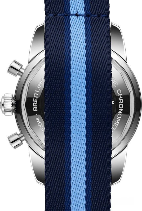 Часы Breitling Superocean Heritage II Chronograph 44 представлены в корпусе из нержавеющей стали размером 44 х 15.65 мм и водонепроницаемостью до 200 метров. Внутри корпуса установлен автоматический механизм с запасом хода 48 часов. На серебристом циферблате отображаются часы, минуты, секунды, дата, день недели, накопители хронографа. Часы комплектуются текстильным ремешком с вставкой из нержавеющей стали. Серия ограничена - 1000 шт.