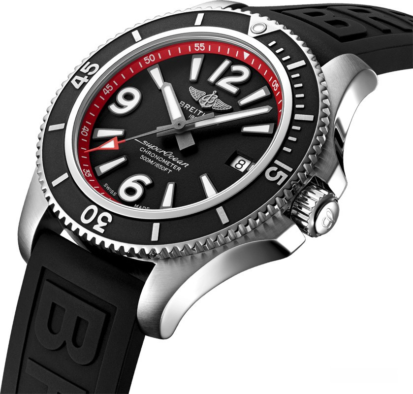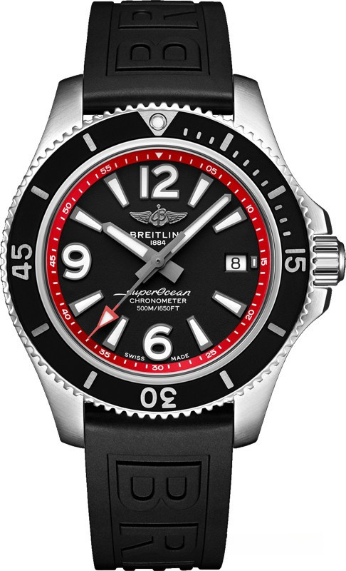 Часы Breitling Superocean Automatic 42 представлены в корпусе размером 42 х 13.3 мм из нержавеющей стали водонепроницаемостью 500 метров. Внутри корпуса установлен автоматический механизм, Калибр Breitling 17, обладающий запасом хода 38 часов. На черном циферблате отображаются часы, минуты, секунды, дата. Часы поставляются на каучуковом ремешке с застежкой из нержавеющей стали.