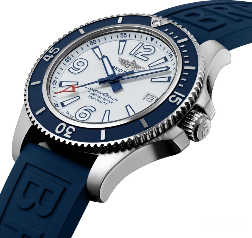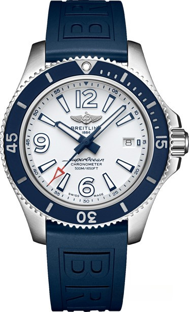 Часы Breitling Superocean Automatic 42 представлены в корпусе размером 42 х 13.3 мм из нержавеющей стали водонепроницаемостью 500 метров. Внутри корпуса установлен автоматический механизм, Калибр Breitling 17, обладающий запасом хода 38 часов. На белом циферблате отображаются часы, минуты, секунды, дата. Часы поставляются на каучуковом ремешке с вставкой из нержавеющей стали.
