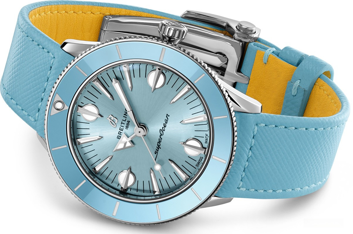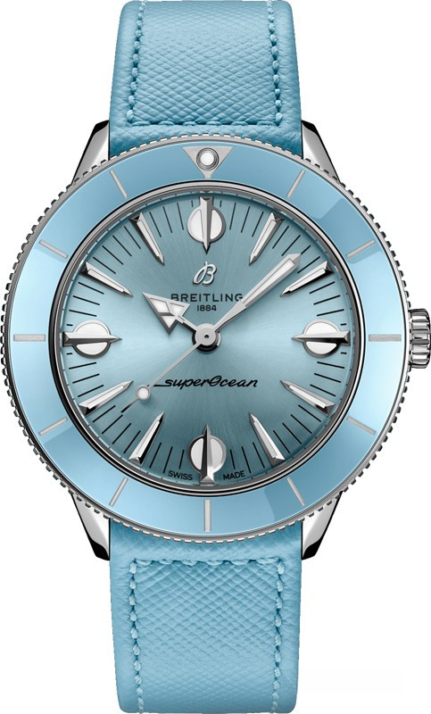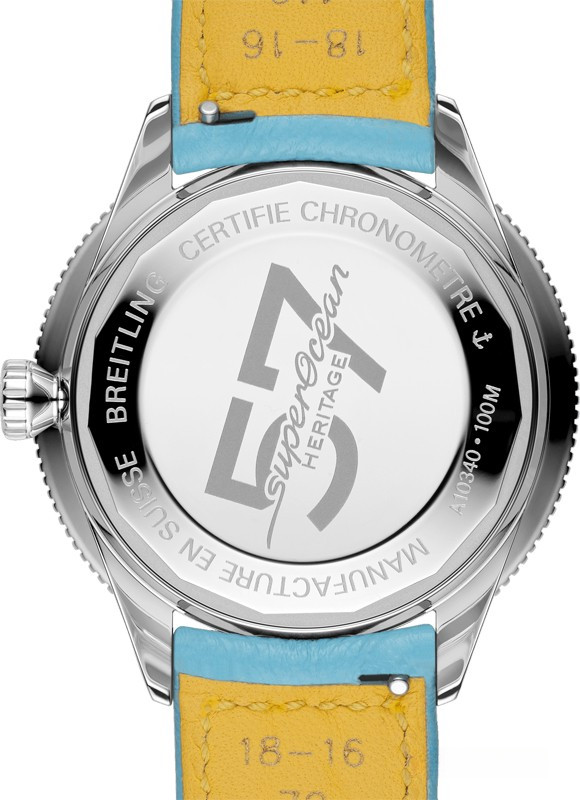 Часы Breitling Superocean Heritage 57 представлены в корпусе из нержавеющей стали размером 38 мм и водонепроницаемостью до 100 метров. Внутри корпуса установлен автоматический механизм, Калибр Breitling 10 с запасом хода 42 часа. На голубом циферблате отображаются часы, минуты, секунды. Часы комплектуются кожаным ремешком с застежкой из нержавеющей стали.