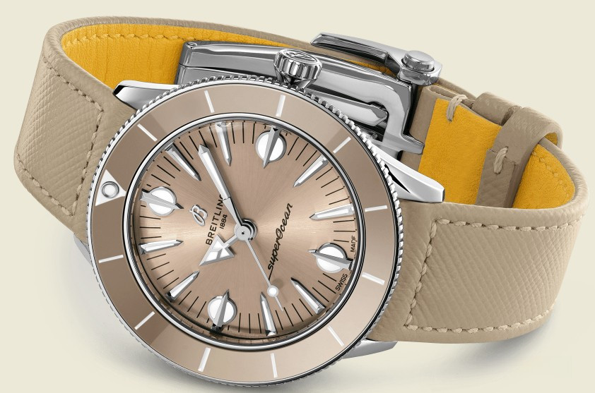 Часы Breitling Superocean Heritage 57 представлены в корпусе из нержавеющей стали размером 38 мм и водонепроницаемостью до 100 метров. Внутри корпуса установлен автоматический механизм, Калибр Breitling 10 с запасом хода 42 часа. На коричневом циферблате отображаются часы, минуты, секунды. Часы комплектуются кожаным ремешком с застежкой из нержавеющей стали.