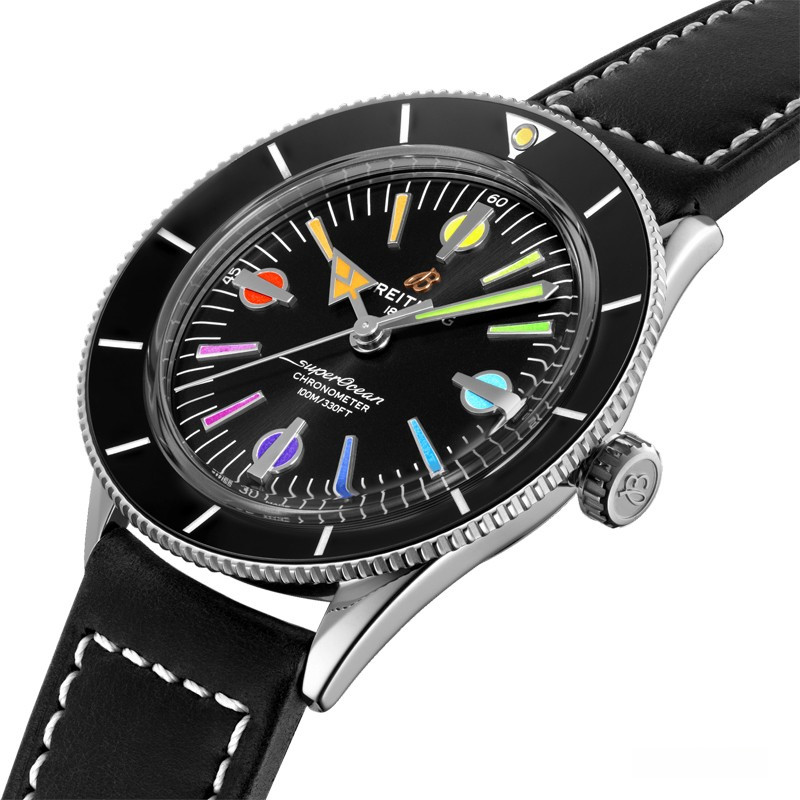 Часы Breitling Superocean Heritage 57 представлены в корпусе из нержавеющей стали размером 42 мм и водонепроницаемостью до 100 метров. Внутри корпуса установлен автоматический механизм, Калибр Breitling 10 с запасом хода 42 часа. На черном циферблате отображаются часы, минуты, секунды. Часы комплектуются кожаным ремешком с вставкой из нержавеющей стали.