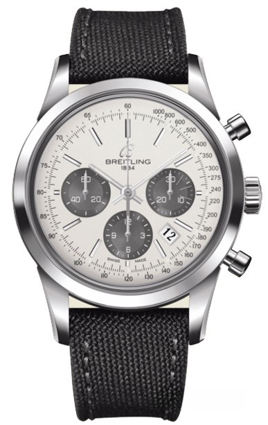 Часы Breitling Transocean Chronograph представлены в корпусе из нержавеющей стали размером 43 х 14.35 мм и водонепроницаемостью до 100 метров. Внутри корпуса установлен автоматический механизм, Калибр Breitling 01 с запасом хода 70 часов. На белом с серым циферблате отображаются часы, минуты, секунды, дата, тахиметр, накопители хронографа. Часы комплектуются текстильным ремешком с вставкой из нержавеющей стали.