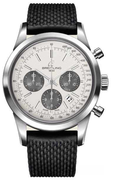 Часы Breitling Transocean Chronograph представлены в корпусе из нержавеющей стали размером 43 х 14.35 мм и водонепроницаемостью до 100 метров. Внутри корпуса установлен автоматический механизм, Калибр Breitling 01 с запасом хода 70 часов. На белом с серым циферблате отображаются часы, минуты, секунды, дата, тахиметр, накопители хронографа. Часы комплектуются каучуковым ремешком с вставкой из нержавеющей стали.