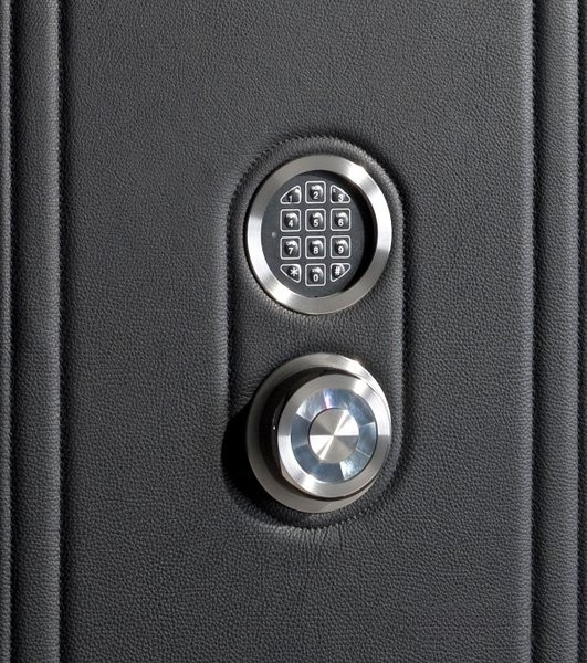 Сейф для хранения 16 часов с автоподзаводом, работает от сетевого адаптера. Корпус ручной работы, покрытый рояльным лаком, с инкрустацией вставками из ценных пород дерева. Прошитая вручную итальянская кожа наппа. Внутренняя отделка высококачественным черным велюром. Швейцарский замок с секретом. Современная технология светодиодного освещения с функцией затухания. Регулируемые по высоте ножки из нержавеющей стали. Высококачественная ручная работа немецких мастеров. Размеры: 1117 x 555 x 505 мм, вес 220 кг.