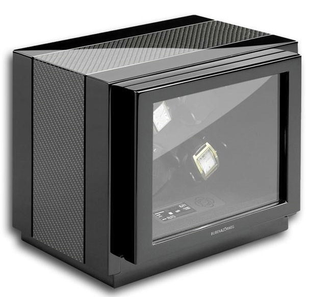 Шкатулка Buben & Zorweg для хранения 4-х часов с автоматическим заводом Time Mover Vantage 4 TIME MOVER Vantage 4 Carbon. Размер: 295 x 244 x 224 мм. Страна производитель Австрия. Внешняя отделка: многослойное глянцевое лаковое покрытие подчеркивает всю красоту углеродного волокна. Внутри шкатулка отделана высококачественным черным велюром. Управление электронное с индикацией режимов на ЖК экране. Отличное сочетание дизайна и технологий. Бесшумные моторы Elma. Фиксаторы для часов надежны и безопасны для часов с кожаными ремешками. Шкатулка с цифровым управлением, программируется на необходимое количество оборотов (от 650 до 1800 оборотов в сутки) и направление вращения. Возможность переключения в спящий режим для исключения малейших шумов. Имеет режим быстрого завода, эффективен для часов, которые уже остановились или близки к этому. Модель комплектуется с сетевым адаптером и предоставляется в фирменной коробке с документами. Данная шкатулка будет для вас не только предметом интерьера, и но прежде всего очень функциональной вещью. Вы будете всегда уверены в том, что Ваши часы всегда готовы, когда Вам это необходимо.