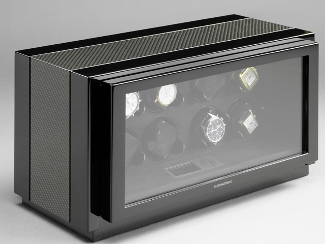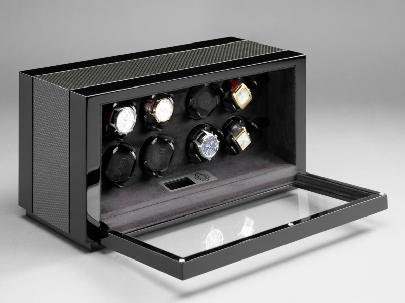 По сравнению с предыдущем поколением, данная модель располагает более расширенными программными возможностями для завода часов, удобный жидкокристаллический дисплей и сенсорное управление. Внешняя отделка: массив дерева под черным глянцевым лаком, с вставками из карбона. Многослойное нанесение рояльного лака дает очень глубокий и насыщенный цвет дерева и предотвращает от старения и выцветания Внутренняя отделка: черный велюр, кожа. Комплектуется сетевым адаптером Размер корпуса: 45,6 x 24,3 x 24,3 см Вес: 12кг