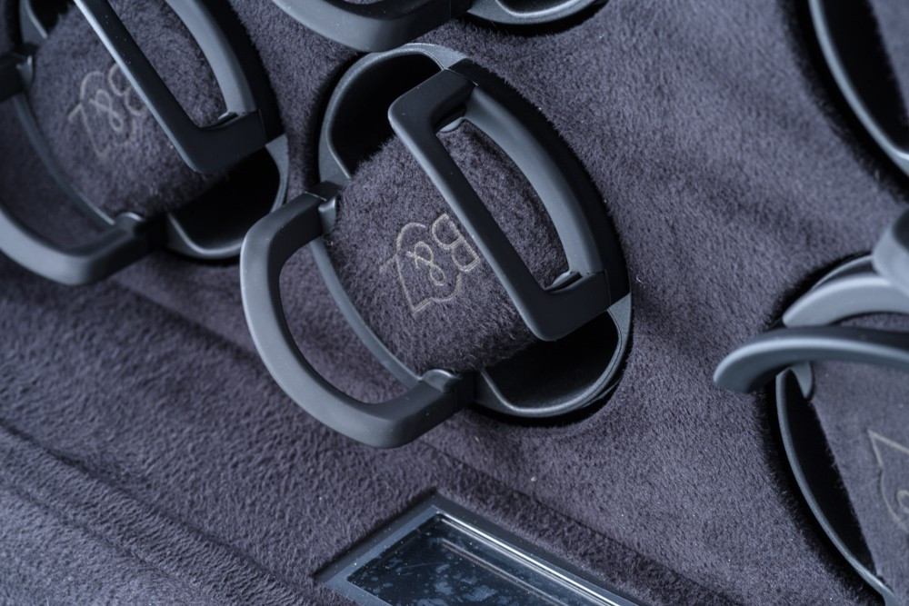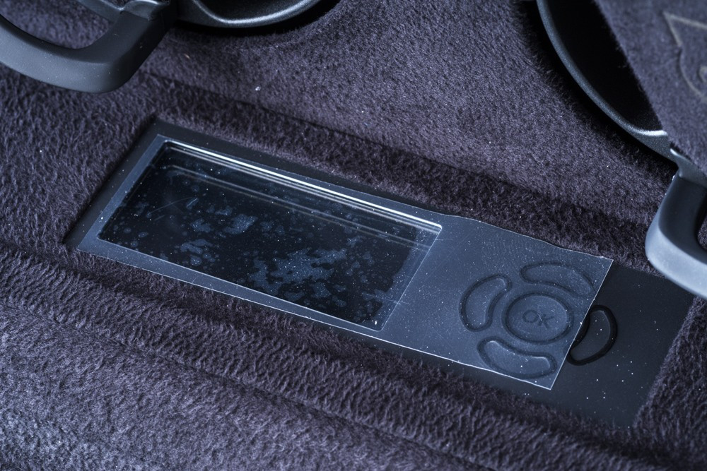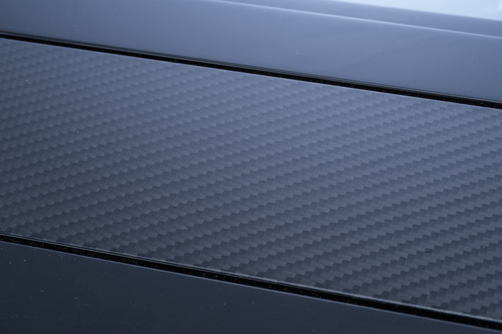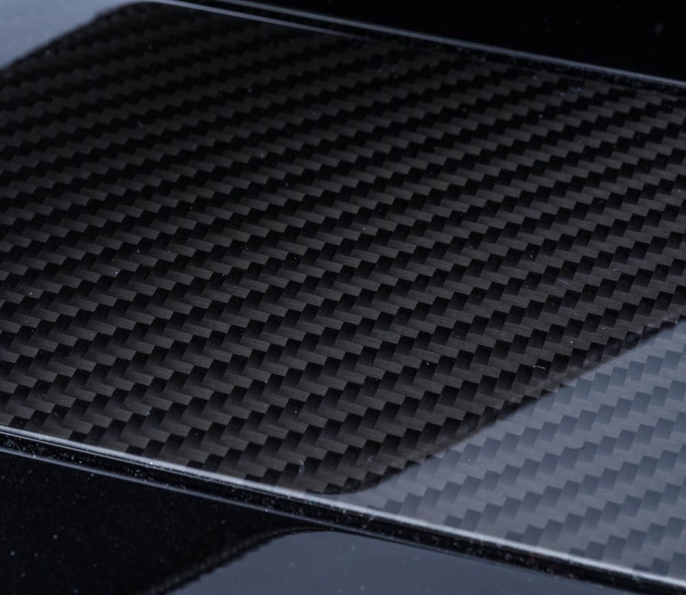 массив дерева под черным глянцевым лаком, с вставками из карбона, черный велюр