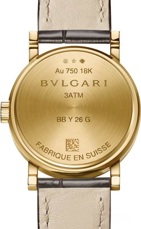 Часы Bvlgari Automatic 38 mm представлены в корпусе размером 38 х 8.75 мм из желтого золота18к водонепроницаемостью 50 метров. Внутри корпуса установлен автоматический механизм, Калибр BVL 191, обладающий запасом хода 42 часа. На черном циферблате отображаются часы, минуты, секунды, дата. Часы поставляются на ремешке из кожи аллигатора с золотой застежкой.