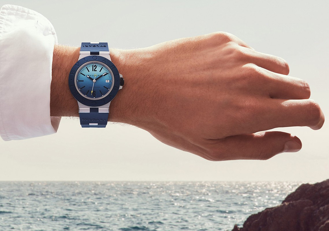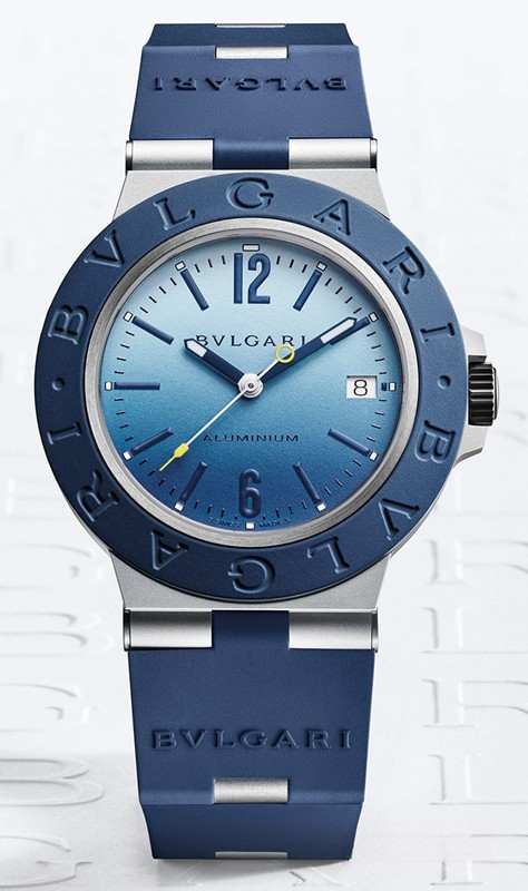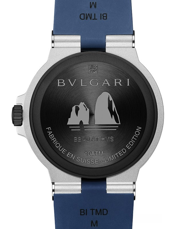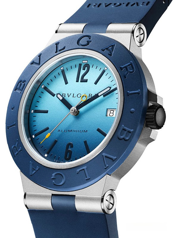 Часы Bvlgari Aluminium Capri Automatic представлены в корпусе размером 40 мм из алюминия с каучуковым безелем водонепроницаемостью 100 метров. Внутри корпуса установлен автоматический механизм, Калибр В77, обладающий запасом хода 42 часа. На голубом циферблате отображаются часы, минуты, секунды, дата. Часы поставляются на каучуковом ремешке с застежкой из нержавеющей стали. Серия ограничена - 1000 шт.