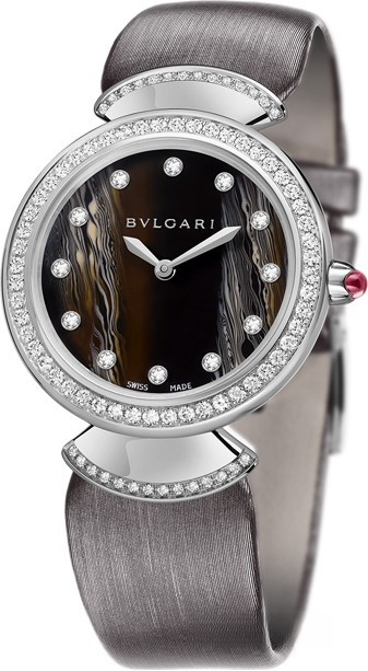 Часы Bvlgari Diva's Dream представлены в корпусе из белого золота 18к размером 30 мм и водонепроницаемостью 30 метров. Внутри корпуса установлен кварцевый механизм. На циферблате из натурального черного ацетата с 12-ю белыми бриллиантами отображаются часы, минуты. Часы поставляются на сатиновом ремешке с вставкой из белого золота 18к. Корпус инкрустирован белыми бриллиантами.