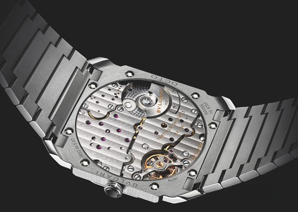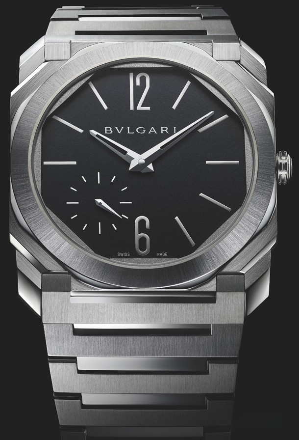 Часовая мануфактура Bulgari представила новую модель часов Octo Finissimo Automatic. Новое творение итальянского дома моды обладает общей толщиной всего 5.25 мм, а его механизм - всего 2.23 мм для диаметра 40 мм. Рабочая частота механизма составляет 21 600 пк/час, механизм обладает 60-часовым запасом хода. Часы водонепроницаемы до 50 метров. Калибр украшен вручную узором Côtes de Genève и круговым зернением. Корпус изготовлен из нержавеющей стали. Отдельные поверхности шлифованы пескоструем, что придает часам современные нотки. Часы комплектуются стальным браслетом.