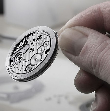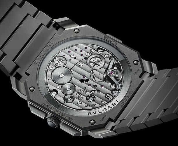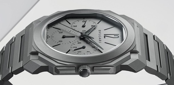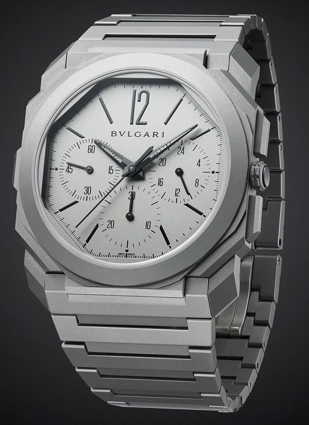 Компания Bulgari представила новую модель часов Octo Finissimo Chronograph GMT Automatic. Новинка с функцией GMT с гордостью может претендовать на звание самого тонкого в мире автоматического хронографа. Толщина корпуса составляет всего 6.9 мм. Как и у многих предыдущих моделей Octo Finissimo, у Octo Finissimo Chronograph GMT Automatic есть угловатый корпус, изготовленный из титана, с титановым циферблатом и титановым браслетом. Его диаметр составляет 42 мм. Увеличенные накопители хронографа отличаются минимумом разметки. В центре всего находится совершенно новый механизм, Калибр BVL 318. Механизм имеет толщину всего 3.3 мм, устанавливая еще один рекорд: это самый тонкий автоматический Калибр хронографа из когда-либо сделанных. К тому же он усложнен функцией GMT. Внимательный наблюдатель заметит, что в часах нет традиционного ротора. Чтобы сделать механизм таким тонким, Bulgari пришлось использовать периферийный ротор из твердой платины, что повлекло увеличение диаметра корпуса. Калибр BVL 318 обладает 55-часовым запасом хода. Сменить часовой пояс можно на ходу, всего лишь нажав на кнопку, расположенную на 9-ти часах с боковой стороны корпуса.