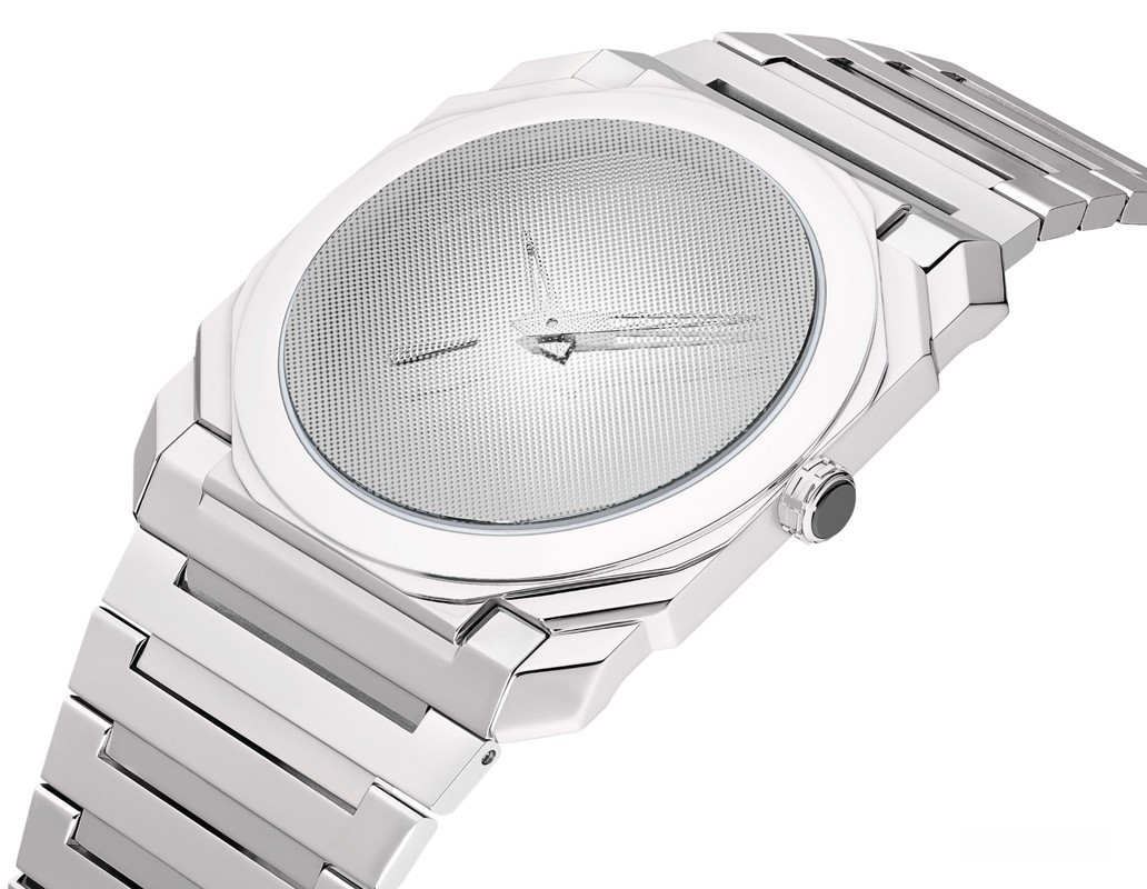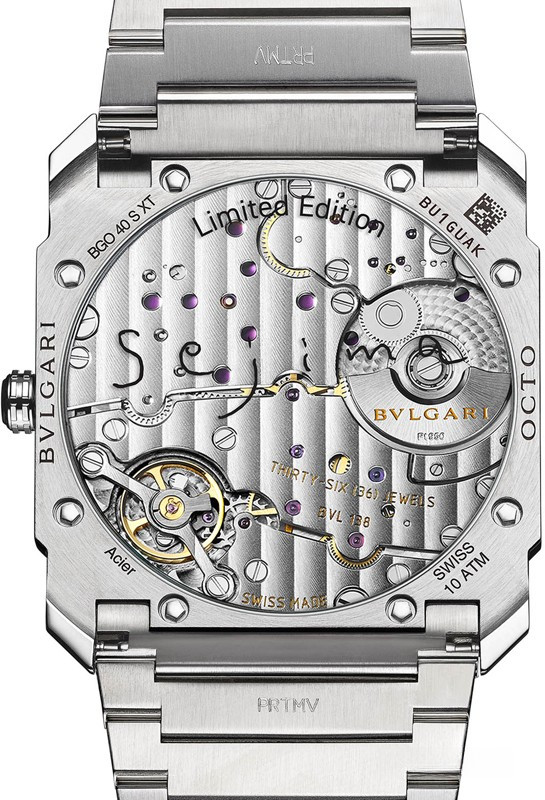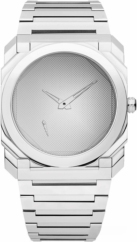 Настоящая икона современного высокого часового искусства, часы Octo Finissimo Automatic Sejima из полированной нержавеющей стали дополняют необыкновенное сочетание итальянского дизайна и швейцарских инженерных разработок с их ультратонкими линиями и идеальной внутренней архитектурой. Эта эксклюзивная модель, созданная в сотрудничестве со звездой японской архитектуры Сэдзимой, сочетает в себе рекордный механический механизм с автоподзаводом толщиной всего 2,23 мм, необычайную прозрачность и сверкающий зеркальный эффект. Часы Octo Finissimo Sejima Limited Edition с мануфактурным механическим механизмом с автоподзаводом (микроротор), калибром BVL (толщина 2,23 мм), минутной и малой секундной стрелкой, 65-часовым запасом хода. Корпус из полированной нержавеющей стали диаметром 40 мм (толщина 6,40 мм), заводная головка из нержавеющей стали со вставкой из черной керамики, циферблат из полированного сапфирового стекла с металлическим точечным узором, прозрачная задняя крышка с надписью Sejima, браслет из полированной нержавеющей стали с раскладывающейся застежкой с тремя лезвиями. Водонепроницаемость до 100 метров.