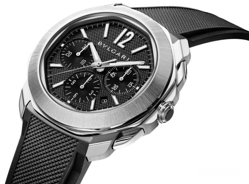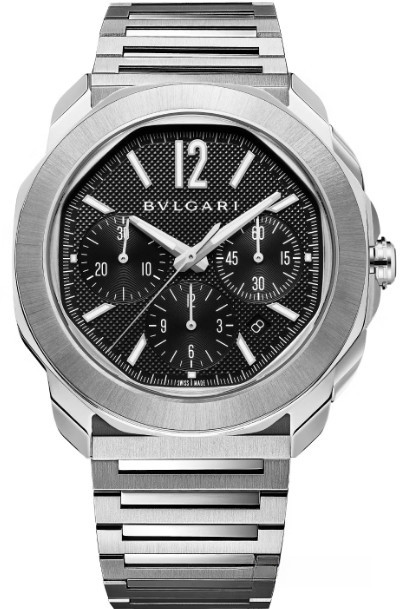 Часы Bvlgari Octo Roma Chronograph представлены в корпусе размером 42 мм нержавеющей стали водонепроницаемостью 100 метров. Внутри корпуса установлен автоматический механизм, Калибр BVL 399, обладающий запасом хода 42 часа. На черном циферблате отображаются часы, минуты, секунды, дата. Часы поставляются на браслете из нержавеющей стали.