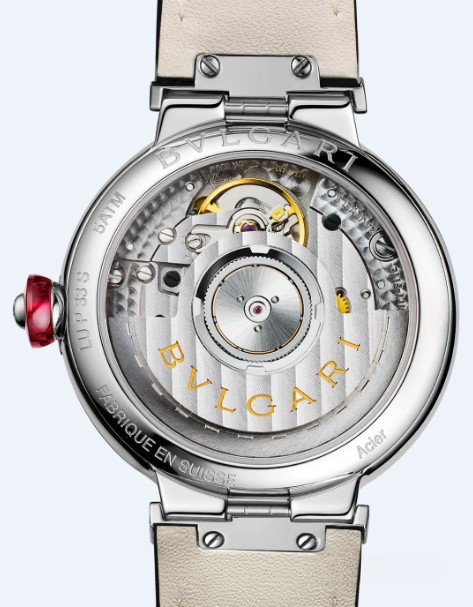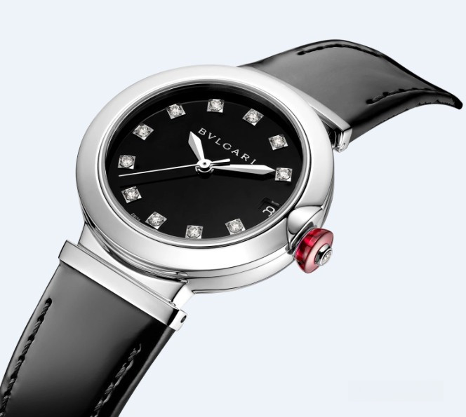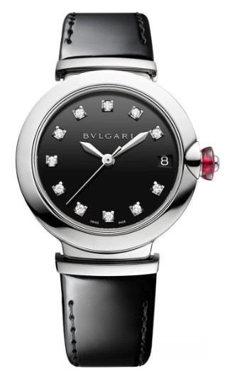 Часы Bvlgari Lvcea представлены в корпусе из нержавеющей стали размером 33 мм и водонепроницаемостью 30 метров. Внутри корпуса установлен автоматический механизм. На черном циферблате с 12-ю белыми бриллиантами отображаются часы, минуты, секунды. Часы поставляются на кожаном ремешке с вставкой из нержавеющей стали.