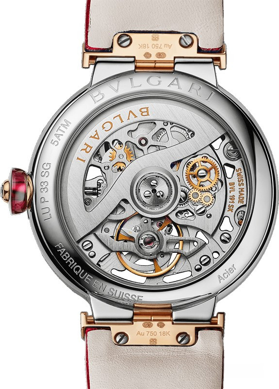 Часы Bvlgari Lvcea Skeleton представлены в корпусе размером 33 мм из нержавеющей стали и розового золота 18к с водонепроницаемостью до 50 метров. Внутри корпуса установлен автоматический механизм, Калибр BVL 191SK, обладающий запасом хода 42 часа. На серебристом скелетированном циферблате отображаются часы, минуты. Часы поставляются на ремешке из кожи аллигатора с вставкой из нержавеющей стали.