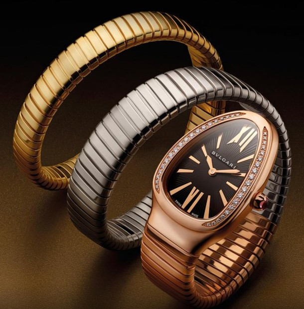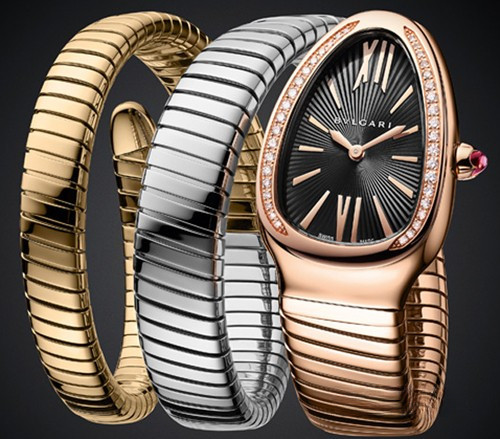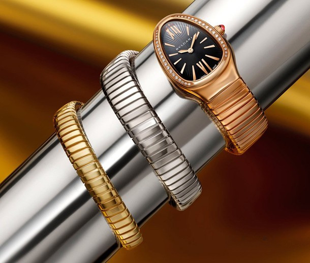 Часы Bvlgari Serpenti 2Т представлены в корпусе из розового золота 18к размером 35 мм и водонепроницаемостью 30 метров. Внутри корпуса установлен кварцевый механизм. На черном гильошированном циферблате отображаются часы, минуты. Часы поставляются на браслете из розового, белого и желтого золота 18к. Безель из белых бриллиантов.