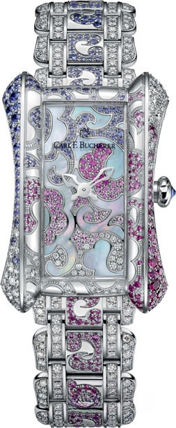 водонепроницаемость 30 м, корпус инкрустирован белыми бриллиантами и розовыми сапфирами, серия ограничена (125 шт.)