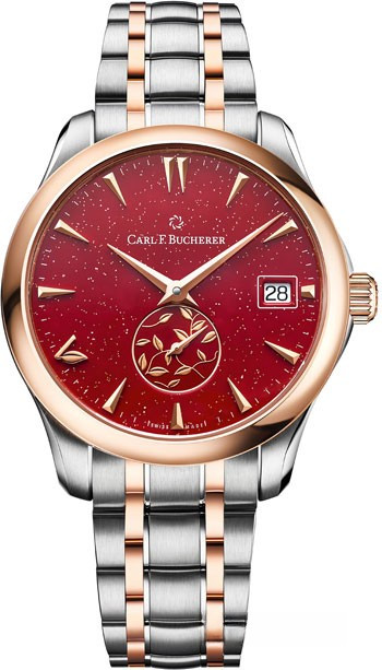 Часы Carl F.Bucherer Manero Autodate Love представлены в корпусе размером 35.5 х 9.15 мм из розового золота 18к и нержавеющей стали с водонепроницаемостью до 30 метров. Внутри корпуса установлен автоматический механизм, Калибр CFB 1971, обладающий запасом хода 42 часов. На красном циферблате отображаются часы, минуты, секунды, дата. Часы поставляются на браслете из нержавеющей стали и розового золота 18к.