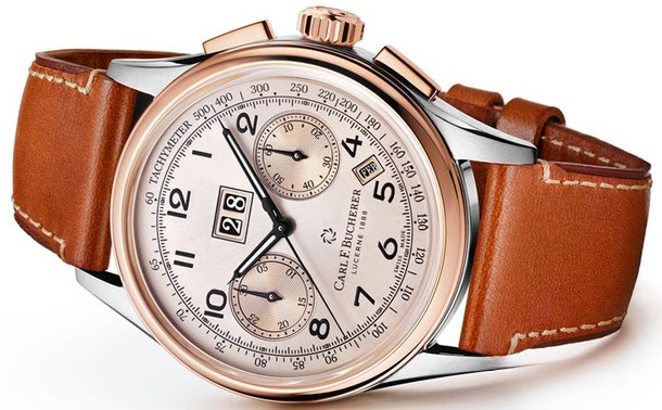 Carl F. Bucherer представили две новинки Heritage BiCompax Annual: одна из нержавеющей стали с серебристым циферблатом, вторая – из нержавеющей стали и розового золота 18к с золотистым циферблатом. Стальная версия поставляется на каучуковом ремешке, биколор – на кожаном ремешке коньячного цвета. В обеих моделях для обозначения часов применяются арабские цифры, по периферии расположена тахиметрическая шкала, стрелки напоминают часы 1950-х и 60-х годов. Этот стиль распространяется и на сам корпус, с правой стороны которого расположены удлиненные кнопки хронографа. Часы усложнены функциями годового календаря. Каждая из версий выпущена ограниченной серией 888 штук.