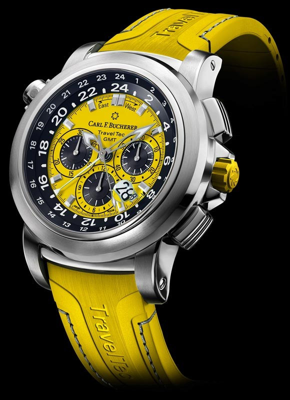 Часы Carl F. Bucherer Patravi TravelTec Color Edition Four Seasons представлены в корпусе размером 46.6 х 15.5 мм из нержавеющей стали водонепроницаемостью 50 метров. Внутри корпуса установлен автоматический механизм, Калибр CFB 1901.1, обладающий запасом хода 42 часа. На желтом с черным циферблате отображаются часы, минуты, секунды, дата, накопители хронографа. Часы поставляются на каучуковом ремешке с вставкой из нержавеющей стали.