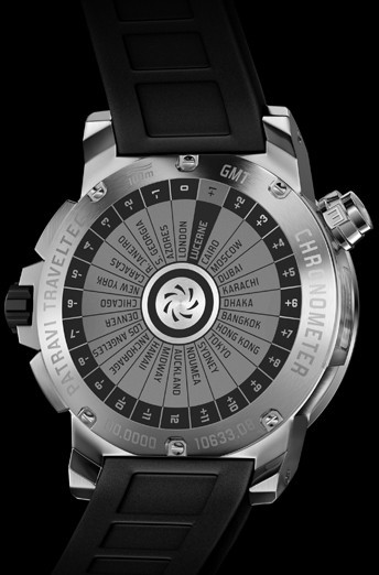 На десятилетие линейки моделей Patravi TravelTec, Carl F. Bucherer выпускают новые часы. Сертифицированный механизм часов Patravi TravelTec II с водонепроницаемостью 100 м соответствует всем стандартам сложных часов. Надежный корпус из нержавеющей стали диаметром 47,4 мм имеет сапфировое стекло с боковой установкой – основной особенностью часов Patravi TravelTec, которая открывает вид на автоматический Калибр CFB 1901.1, одновременно показывающий время трех часовых зон в комбинации с функциями хронографа. Девять часовых индексов на циферблате отображают время первого часового пояса. Внешнее кольцо циферблата позволяет видеть время второго. Часовые индексы на безеле третьего пояса имеют довольно читабельный вид. Удобный размер цифеблата с тремя часовыми зонами позволяет с приятной легкостью переводить взгляд от одного индикатора ко второму. Монопушер модели позволяет быстро и легко переключаться между направлениями Запад-Восток единственным нажатием кнопки. Другой специальной особенностью Patravi TravelTec II является то, что указатель даты можно переместить вперед или назад, регулируя часовую стрелку – потрясающее достижение часовых мастеров. Привлекательная задняя часть корпуса являет собой круг из часовых поясов, демонстрирующий разницу во времени 24-х городов по отношению к основному меридиану, и черную гравировку Lucerne, родины Carl F. Bucherer. Изысканно пришитые кожаные вставки на специальном каучуковом ремешке TravelTec II создают особую комбинацию уникальных материалов.