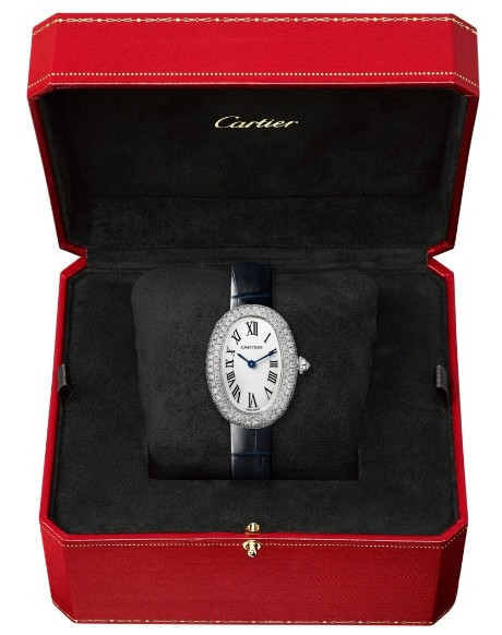 Часы Cartier Baignoire 1920 Small представлены в корпусе из белого золота 18к размером 32 х 26 х 8 мм и водонепроницаемостью до 30 метров. Внутри корпуса установлен кварцевый механизм. На белом циферблате отображаются часы, минуты. Часы комплектуются ремешком из кожи аллигатора с вставкой из белого золота 18к. Корпус инкрустирован белыми бриллиантами.