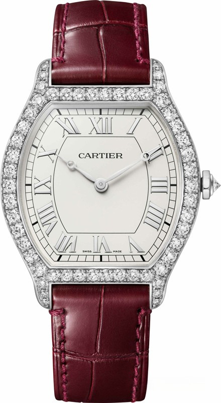 Часы Cartier Prive Tortue представлены в корпусе размером 41.4 х 32.9 х 7.2 мм из платины 950 водонепроницаемостью 30 метров. Внутри корпуса установлен механизм с ручным заводом, Калибр 430 MC, обладающий запасом хода 42 часа. На серебристом циферблате отображаются часы, минуты. Часы поставляются на ремешке из кожи аллигатора с платиновой застежкой. Корпус инкрустирован белыми бриллиантами. Серия ограничена - 50 шт.