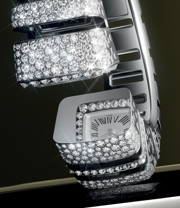 водонепроницаемость 30 м, корпус инкрустирован белыми бриллиантами