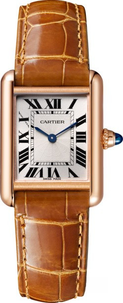 Часы Cartier Tank Louis Cartier Small представлены в корпусе размером 29.5 x 22 x 6.8 мм из розового золота 18к. На серебристом циферблате отображаются часы, минуты. Внутри корпуса установлен с ручным заводом, Калибр 8971 MC. Часы поставляются на ремешке из кожи аллигатора с вставкой из розового золота 18к. Заводной ключ инкрустирован синим сапфиром кабошоном.