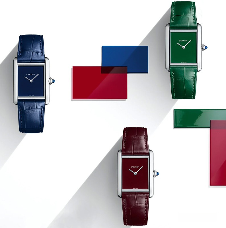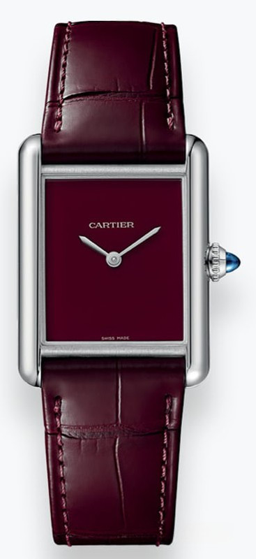 Часы Cartier Tank Must de Cartier представлены в корпусе из нержавеющей стали размером 33.7 x 25.5 х 6.6 мм водонепроницаемостью 30 метров. Внутри корпуса находится кварцевый механизм. На красном циферблате отображаются часы, минуты. Часы поставляются на ремешке из кожи аллигатора с вставкой из нержавеющей стали.