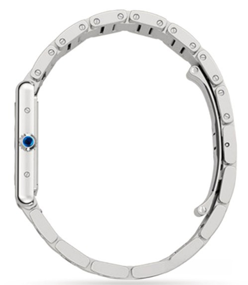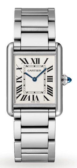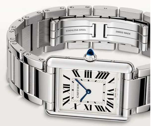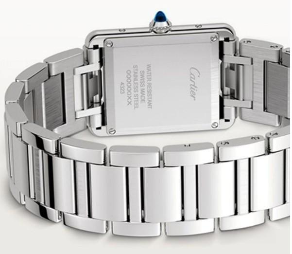 Часы Cartier Tank Must Large Quartz представлены в корпусе из нержавеющей стали размером 33.7 x 25.5 х 6.6 мм и водонепроницаемостью 30 метров. Внутри корпуса установлен кварцевый механизм. На белом циферблате отображаются часы, минуты. Часы поставляются на браслете из нержавеющей стали.