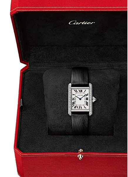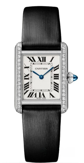 Часы Cartier Tank Must Small Quartz представлены в корпусе из нержавеющей стали размером 29.5 x 22 х 6.6 мм и водонепроницаемостью 30 метров. Внутри корпуса установлен кварцевый механизм. На белом циферблате отображаются часы, минуты. Часы поставляются на сатиновом ремешке с застежкой из нержавеющей стали. Безель из белых бриллиантов.