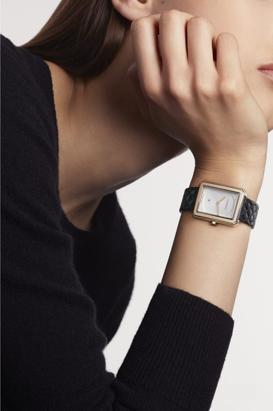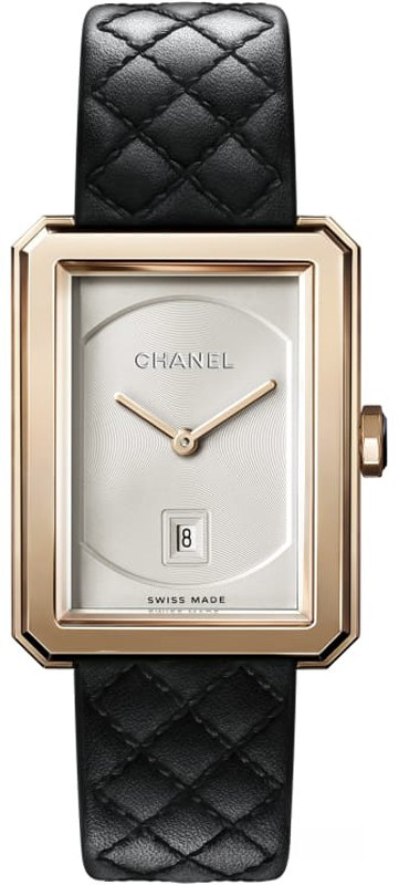 Часы Chanel Boy Friend представлены в корпусе из розового золота 18к размером 26.7 x 34.6 x 7.3 мм водонепроницаемостью 30 метров. Внутри корпуса установлен кварцевый механизм. На серебристом циферблате отображаются часы, минуты, дата. Часы поставляются на кожаном ремешке с вставкой из розового золота 18к.