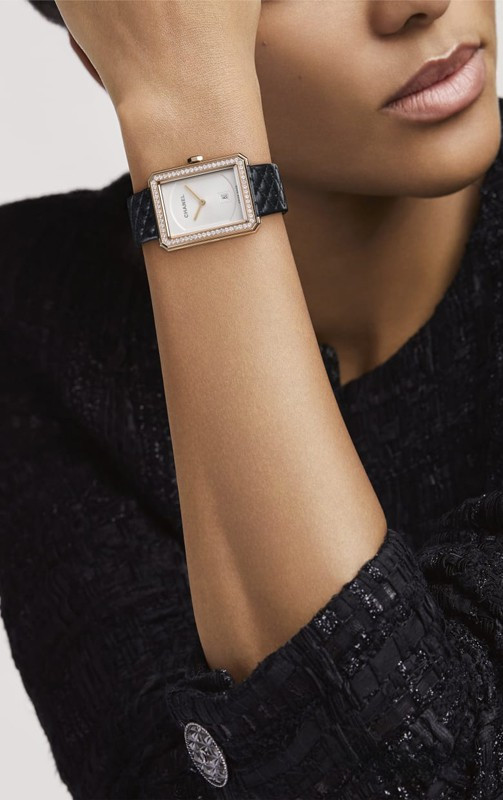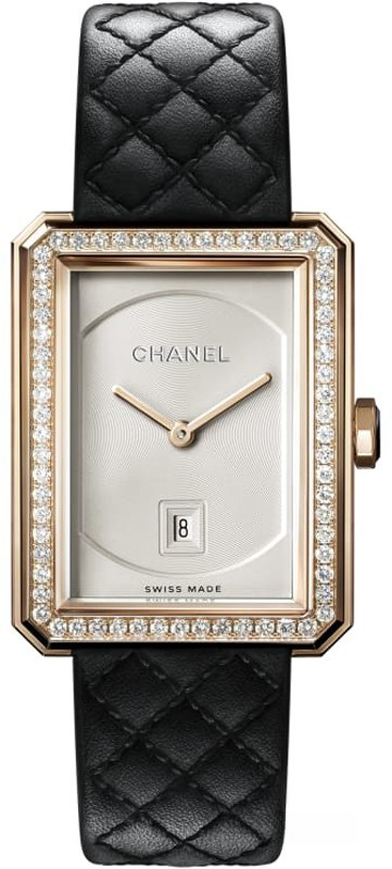 Часы Chanel Boy Friend представлены в корпусе из розового золота 18к размером 26.7 x 34.6 x 7.3 мм водонепроницаемостью 30 метров. Внутри корпуса установлен кварцевый механизм. На серебристом циферблате отображаются часы, минуты, дата. Часы поставляются на кожаном ремешке с вставкой из розового золота 18к. Безель из белых бриллиантов.