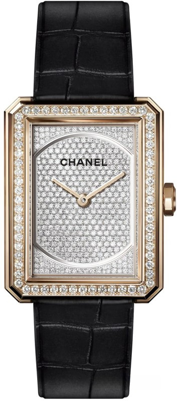 Часы Chanel Boy Friend представлены в корпусе из розового золота 18к размером 26.7 x 34.6 x 7.3 мм водонепроницаемостью 30 метров. Внутри корпуса установлен кварцевый механизм. На циферблате с белыми бриллиантами отображаются часы, минуты. Часы поставляются на ремешке из кожи аллигатора с вставкой из розового золота 18к. Безель из белых бриллиантов.
