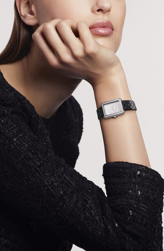 Часы Chanel Boy Friend представлены в корпусе из нержавеющей стали размером 27.9 x 21.5 x 6.2 мм водонепроницаемостью 30 метровю Внутри корпуса установлен кварцевый механизм. На серебристом циферблате отображаются часы и минуты. Часы поставляются на кожаном ремешке с вставкой из нержавеющей стали.