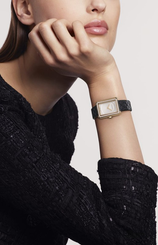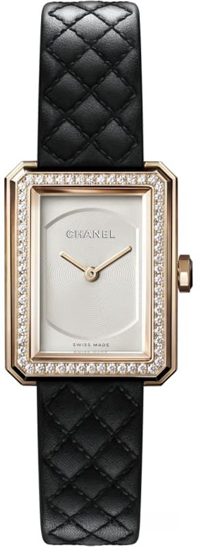 Часы Chanel Boy Friend представлены в корпусе из розового золота 18к размером 27.9 x 21.5 x 6.2 мм водонепроницаемостью 30 метровю Внутри корпуса установлен кварцевый механизм. На серебристом циферблате отображаются часы и минуты. Часы поставляются на кожаном ремешке с вставкой из розового золота 18к. Безель из белых бриллиантов.
