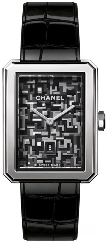 Часы Chanel Boy Friend представлены в корпусе из нержавеющей стали размером 34.6 х 26.7 х 7.3 мм водонепроницаемостью 30 метров. Внутри корпуса установлен кварцевый механизм. На сером циферблате отображаются часы, минуты, дата. Часы поставляются на ремешке из кожи аллигатора с вставкой из нержавеющей стали.