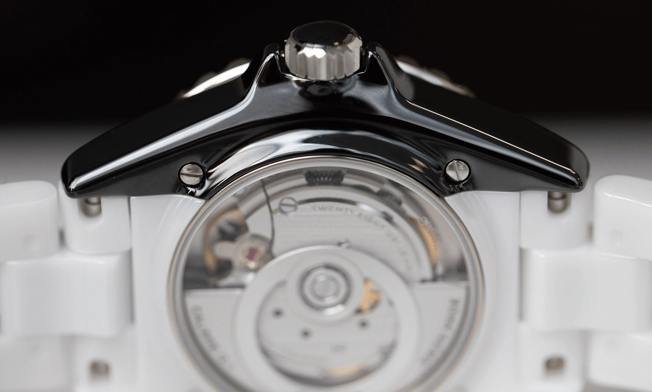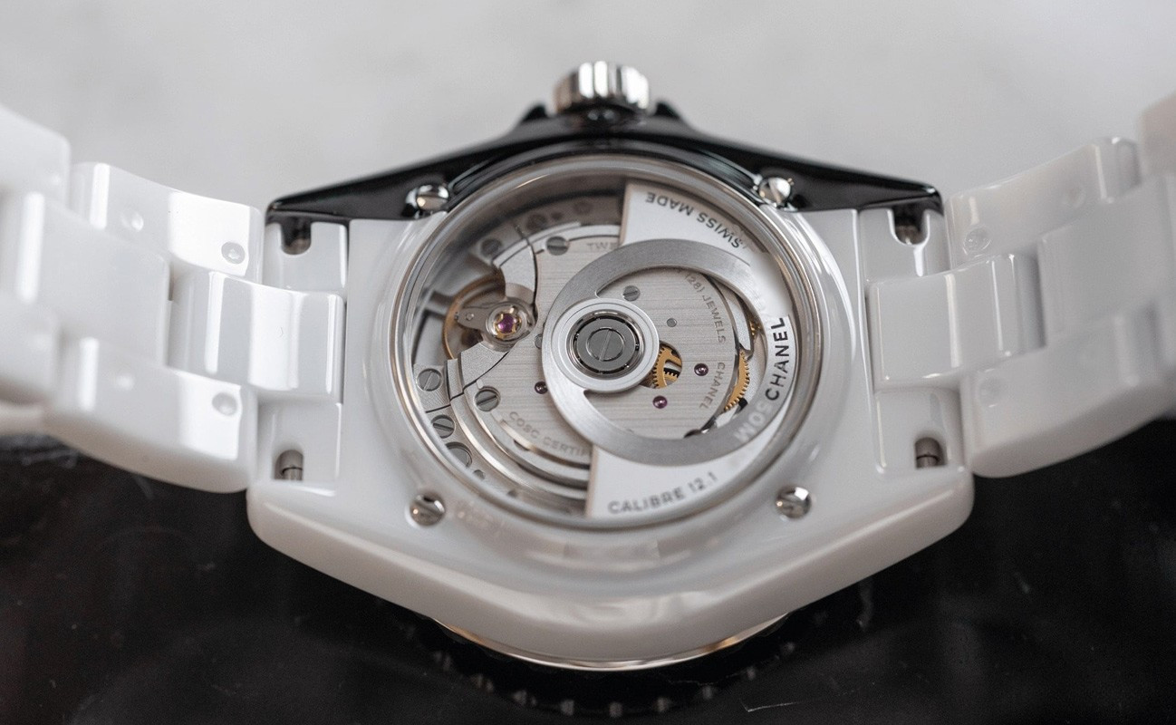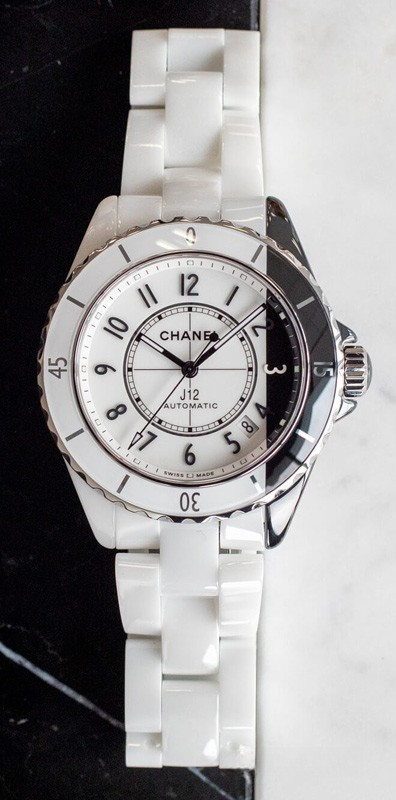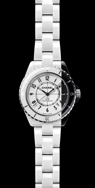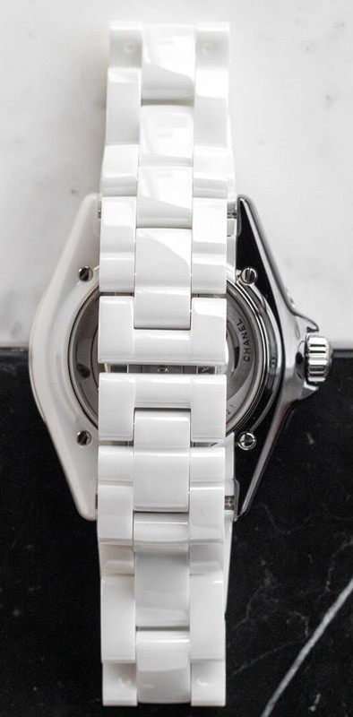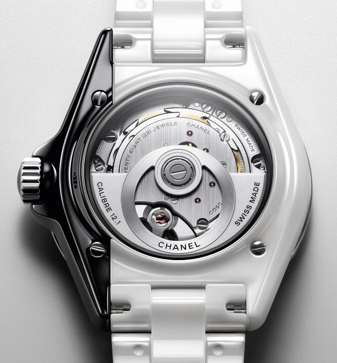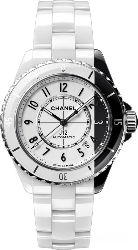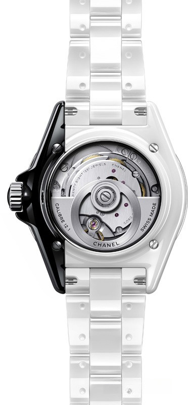 Часы Chanel J12 Paradoxe представлены в корпусе из керамики размером 38 х 12.6 мм водонепроницаемостью 50 метров. Внутри корпуса установлен автоматический механизм, Калибр 12.1, обладающий запасом хода 70 часов. На белом с черным циферблате отображаются часы, минуты, секунды, дата. Часы поставляются на керамическом браслете.