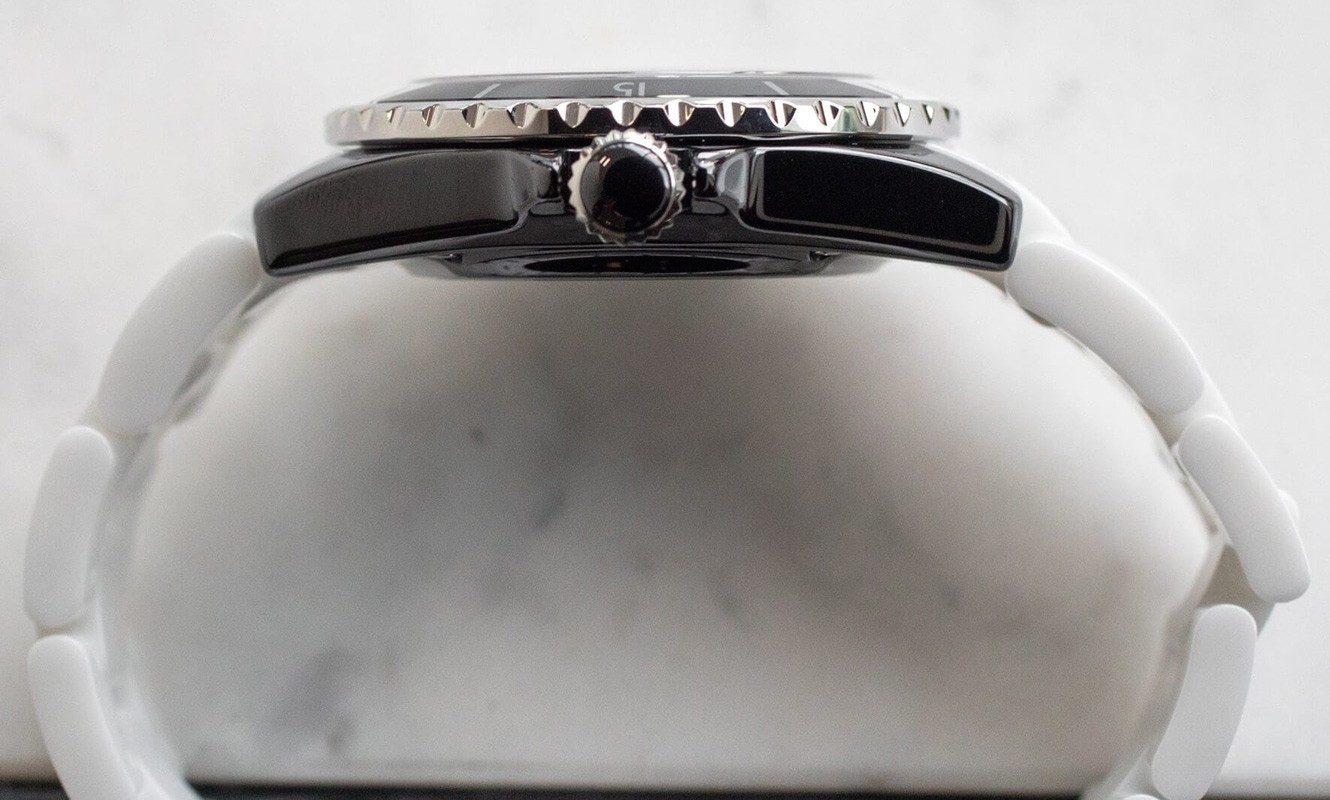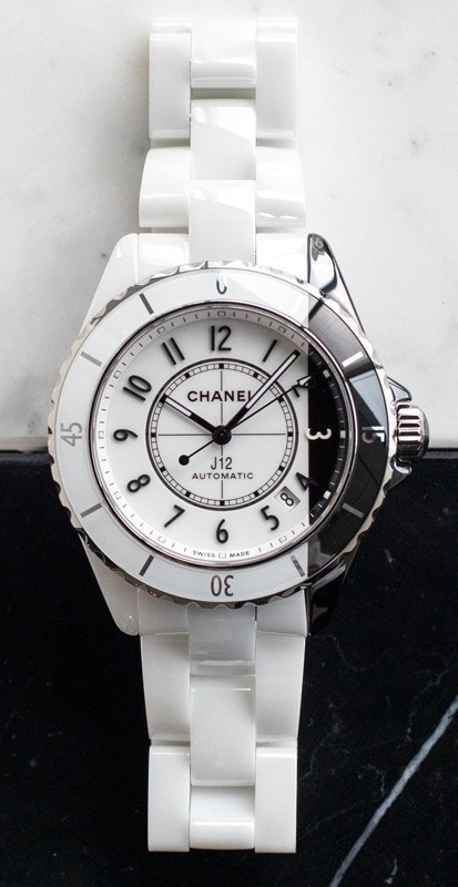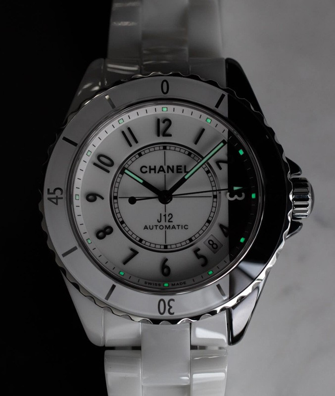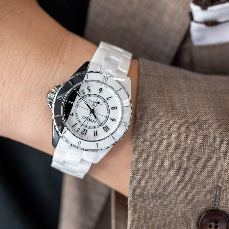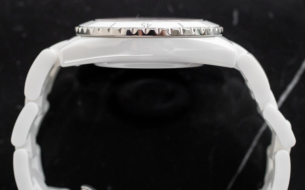 Часы Chanel J12 Paradoxe представлены в корпусе из керамики размером 38 х 12.6 мм водонепроницаемостью 50 метров. Внутри корпуса установлен автоматический механизм, Калибр 12.1, обладающий запасом хода 70 часов. На белом с черным циферблате отображаются часы, минуты, секунды, дата. Часы поставляются на керамическом браслете.