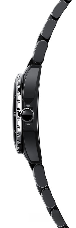 Часы Chanel J12 Quartz 33 mm выпущены в корпусе из керамики размером 33 х 11 мм с водонепроницаемостью 200 м. Внутри корпуса установлен кварцвый механизм. На черном циферблате с 12-ю белыми бриллиантами отображаются часы, минуты, секунды дата. Часы комплектуются браслетом из керамики.