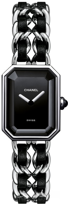Часы Chanel Les Intemporelles de Chanel Premiere выпущены в корпусе из нержавеющей стали размером 26.1 х ??20 х 7 мм с водонепроницаемостью 30 м. Внутри корпуса установлен кварцвый механизм. На черном циферблате отображаются часы, минуты. Часы комплектуются браслетом из нержавеющей стали и кожи.