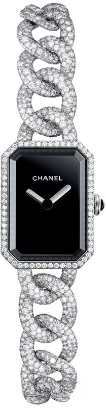 Часы Chanel Les Intemporelles de Chanel выпущены в корпусе из белого золота 18к размером 16 х 22 х 6.2 мм с водонепроницаемостью 30 м. Внутри корпуса установлен кварцевый механизм. На черном циферблате отображаются часы, минуты. Часы комплектуются браслетом из белого золота 18к, инкрустированным белыми бриллиантами. Безель из белых бриллиантов.
