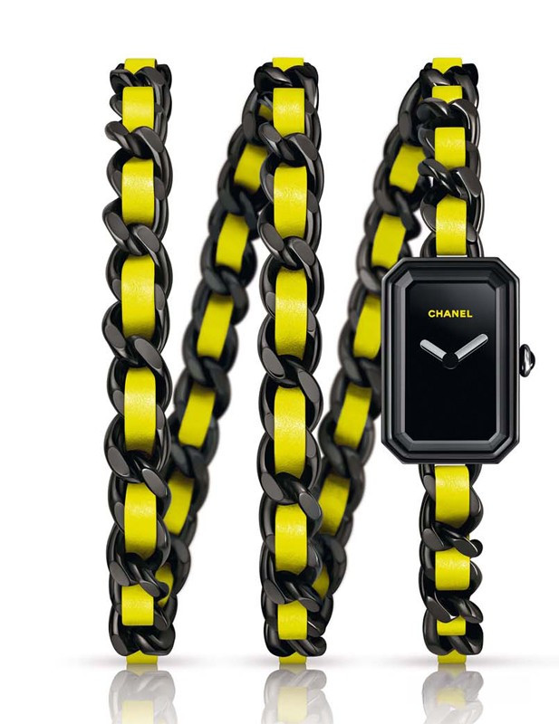 Часы Chanel Premier Electro представлены в корпусе из нержавеющей стали с покрытием DLC водонепроницаемостью 30 метров. Внутри корпуса находится кварцевый механизм. На черном циферблате отображаются часы, минуты. Часы поставляются на стальном браслете.