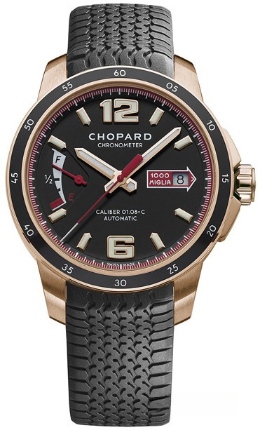Живой, динамичный характер гонки в целом символизируют отличительные красные цвета на циферблате, особенно на минутной шкале и секундой стрелке Mille Miglia GTS Power Control. Часы комплектуются каучуковым ремешком с золотой застежкой. Mille Miglia GTS Power Control – лицо новой коллекции Mille Miglia GTS. Циферблат имеет цифры 6 и 12 негабаритных размеров, с покрытием Superluminova и напоминает торпедо классических автомобилей. На черном циферблате отображаются часы, минуты, секунды, дата и запас хода. Корпус размером 43 х 11.43 мм изготовлен из розового золота 18к. Водонепроницаемость составляет 100 метров.